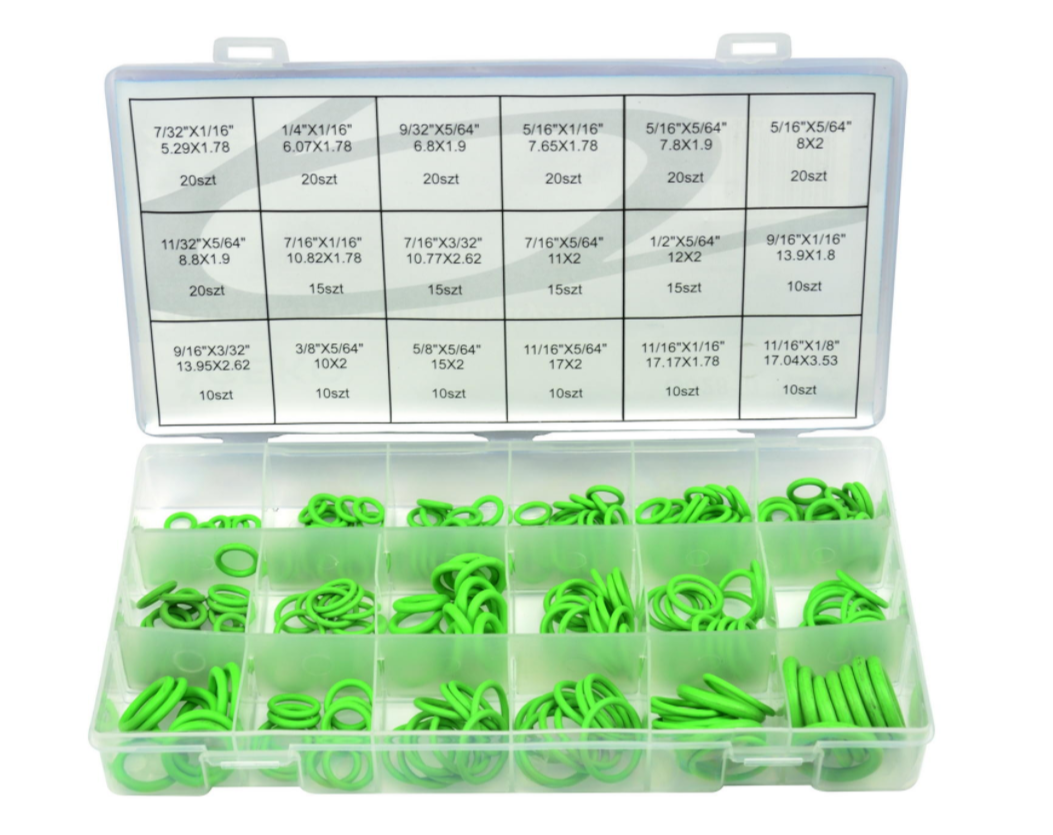 Набір з 270 ущільнювальних кілець 18 різних розмірів. Ідеально підходить для запобігання витоків у водопроводі, з'єднаннях для повітря й газу.